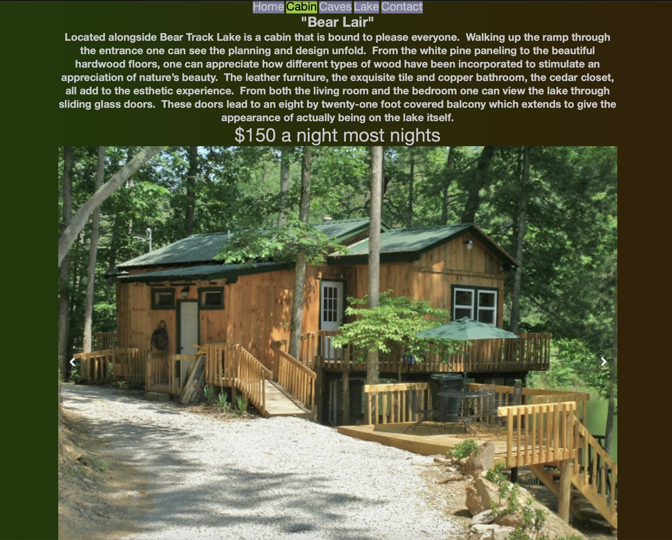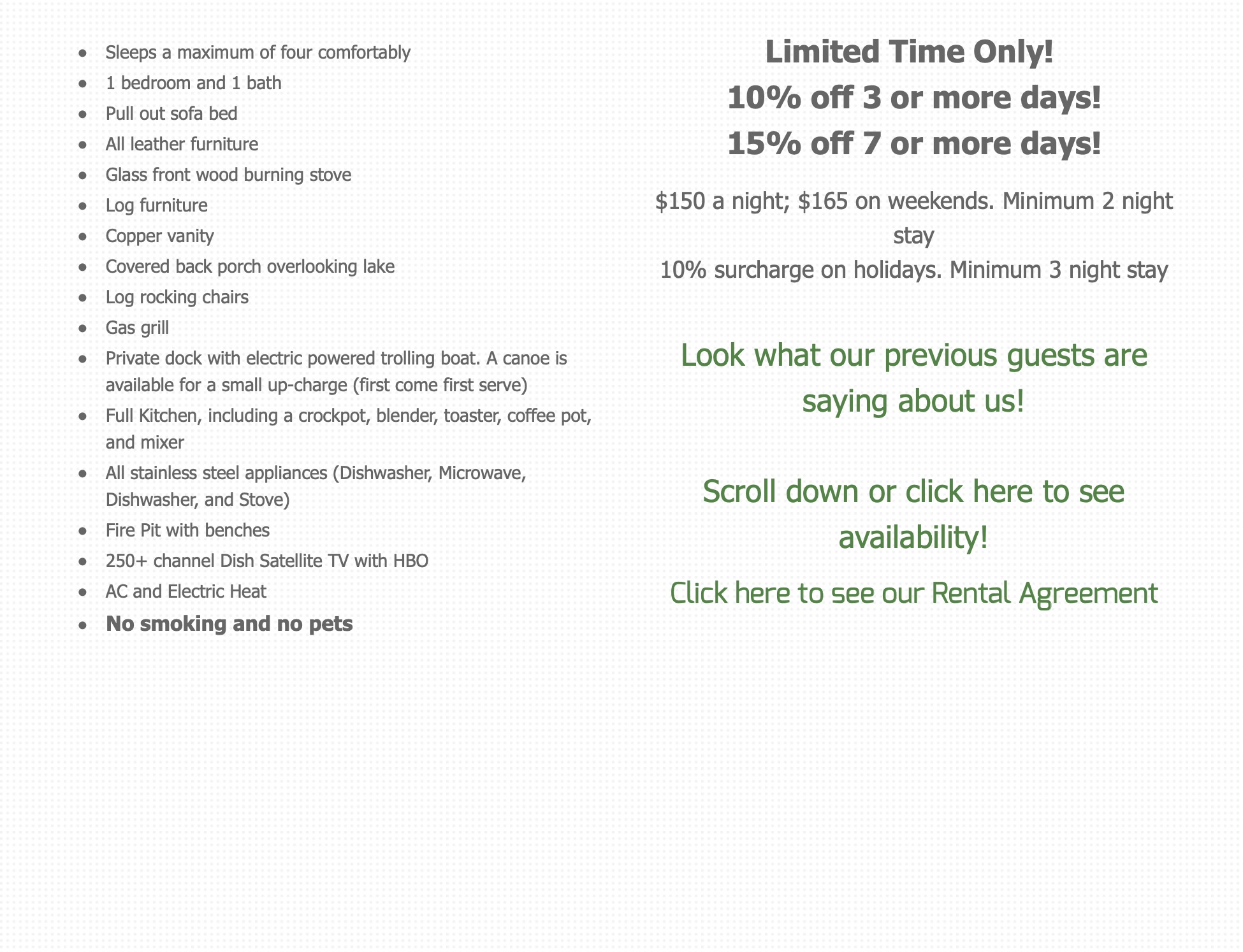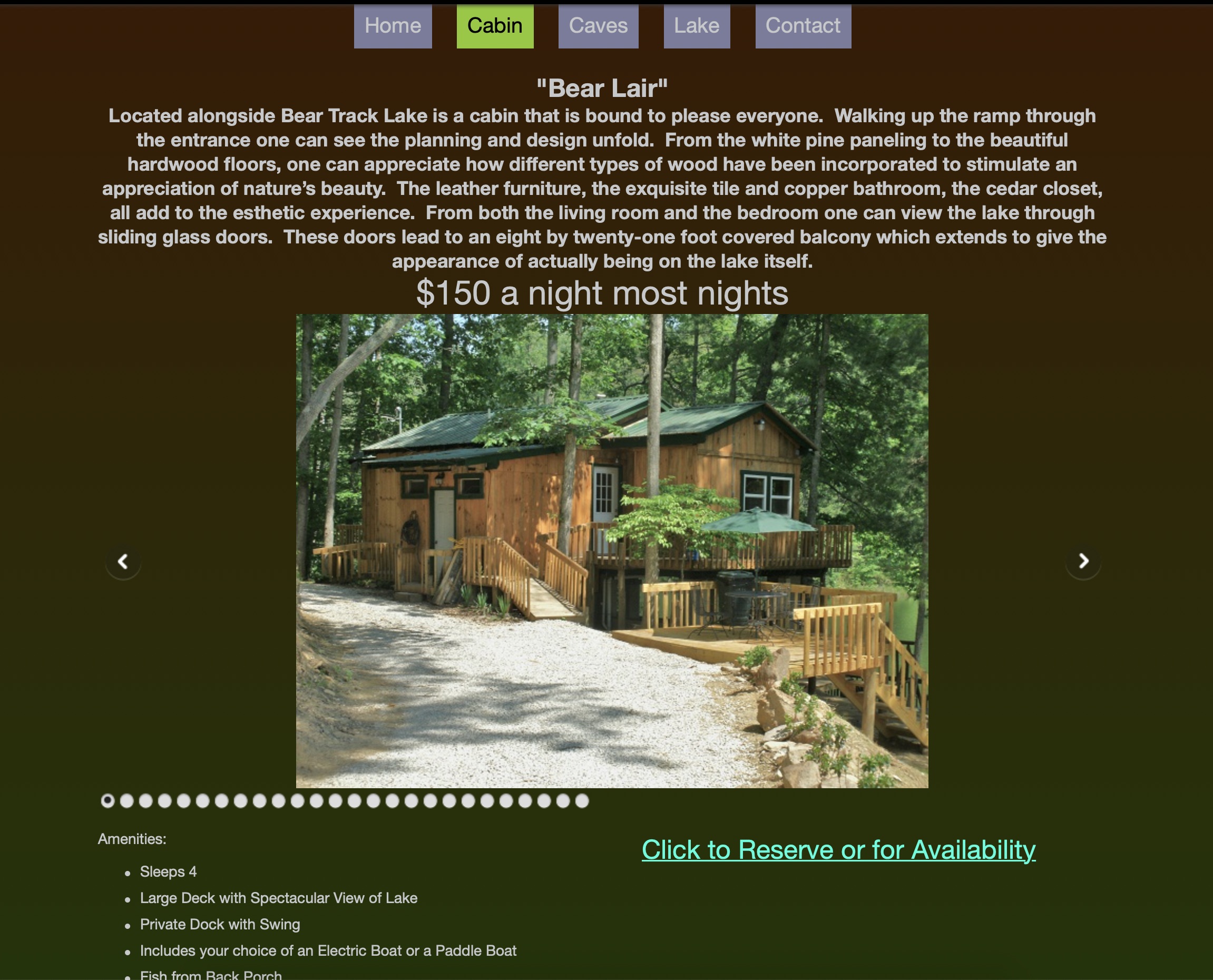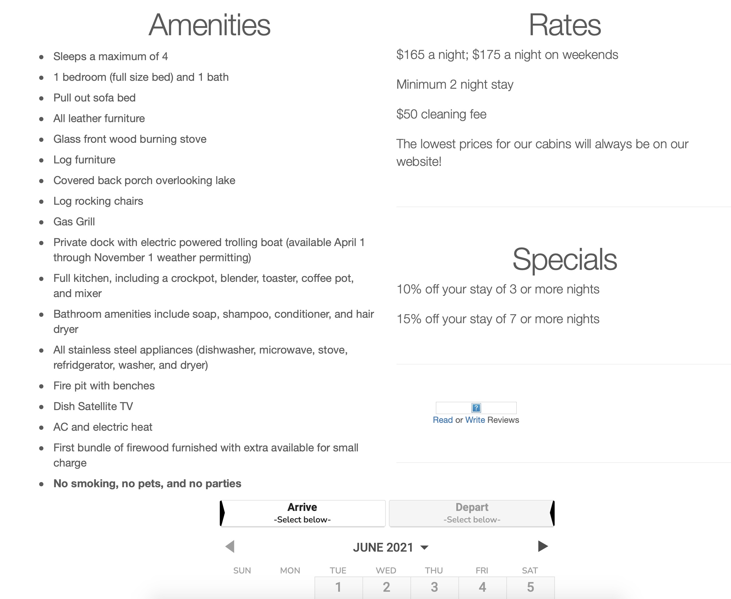 Here’s a screenshot of the cabin page on that site courtesy of the Wayback Machine: