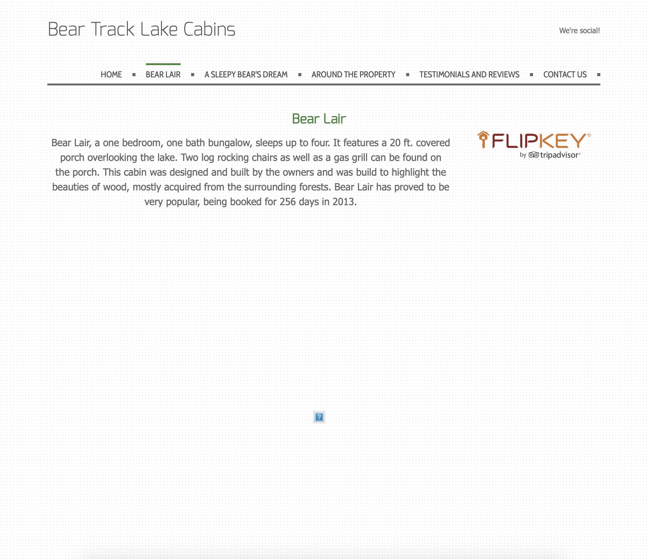 While this version served us well for a few years, the third cabin’s completion presented a problem. The website builder I was using was free for six pages, but we wanted to add a seventh …